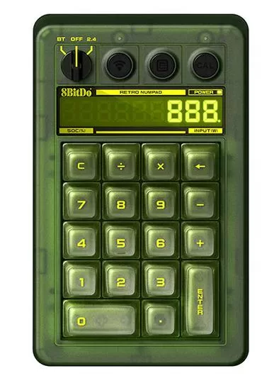 Le pavé numérique mécanique rétro 8BitDo 18 intègre un afficheur à neuf chiffres. Il renforce ainsi ses fonctionnalités de calculatrice tout en conservant son style rétro. L’utilisateur peut basculer rapidement entre les modes pavé numérique et calculatrice. Cela le rend idéal pour une utilisation bureautique ou personnelle. Compatible avec Windows 10 (version 1903 et ultérieures) et Android 9.0 ou ultérieur, il offre plusieurs options de connectivité : Bluetooth, Wi-Fi 2,4 GHz via l’adaptateur fourni et USB filaire.