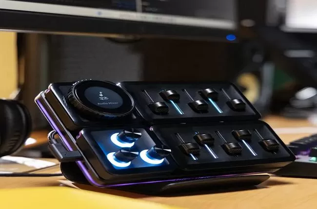 Le kit principal, appelé MasterHUB Creator Kit (modèle MHSK13AA00), comprend plusieurs modules conçus pour couvrir un large éventail de fonctions d’entrée. Parmi ceux-ci, un module d’affichage IPS à 15 touches offre des touches programmables permettant d’exécuter des macros, de lancer des applications ou de changer de scène. Chaque touche dispose d’un affichage personnalisable, améliorant ainsi l’ergonomie et la visibilité pendant son utilisation. De plus, le kit inclut un module à 5 faders destiné aux réglages précis, tels que le contrôle des niveaux audio ou l’ajustement fin des paramètres dans les logiciels de montage. Un module à deux molettes est également inclus, offrant des fonctionnalités d’entrée pour le défilement, le zoom et la navigation dans les timelines.