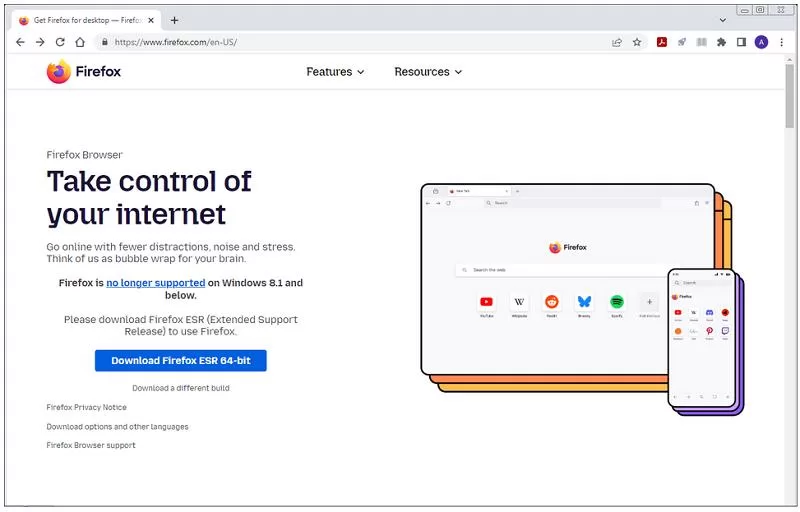 Firefox continuera-t-il à prendre en charge Windows 7, 8 et 8.1 ?