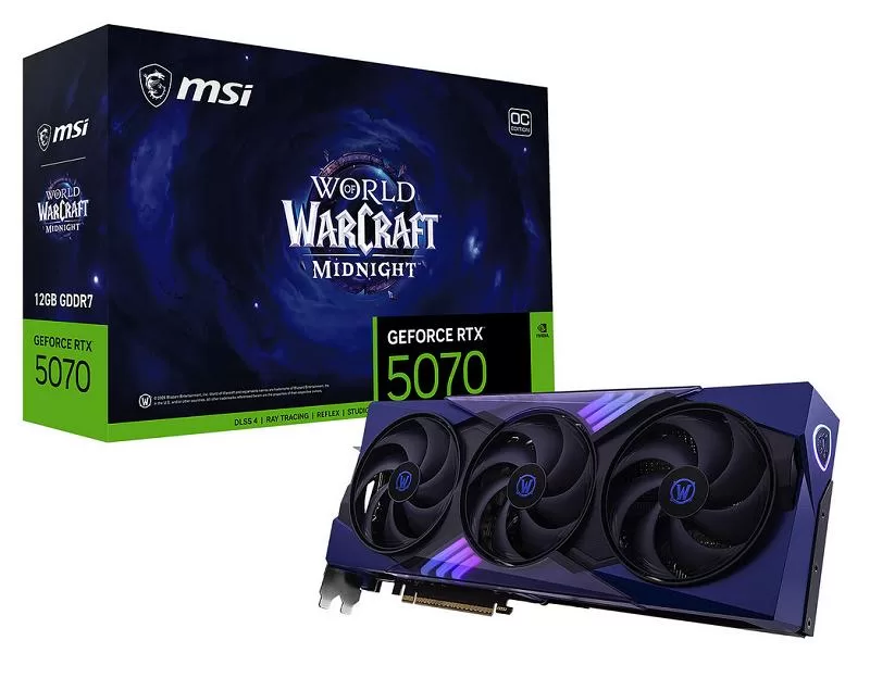 Cette carte graphique MSI RTX5070 12G World of Warcraft MIDNIGHT VOID EDITION OC sera bientôt disponible sur les sites E-Commerces. Le prix sera de : 829.90 euros.